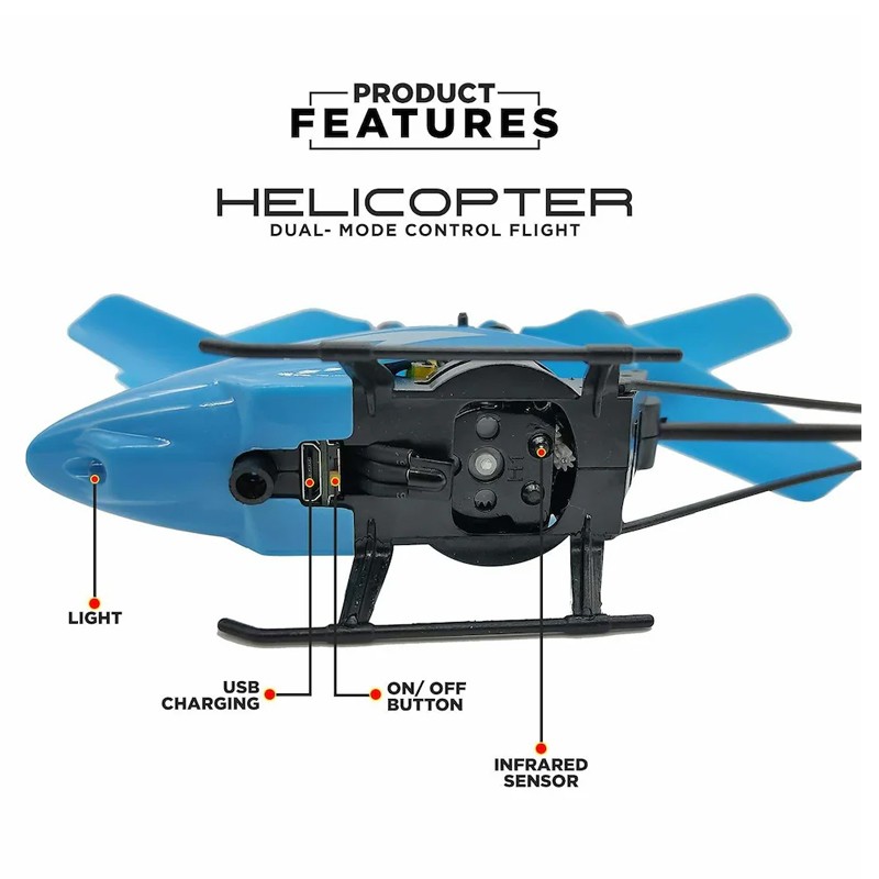 • Auto Fly: Turning on the induction helicopter and putting it horizontally on your palm for 3 S, It will take off vertically.