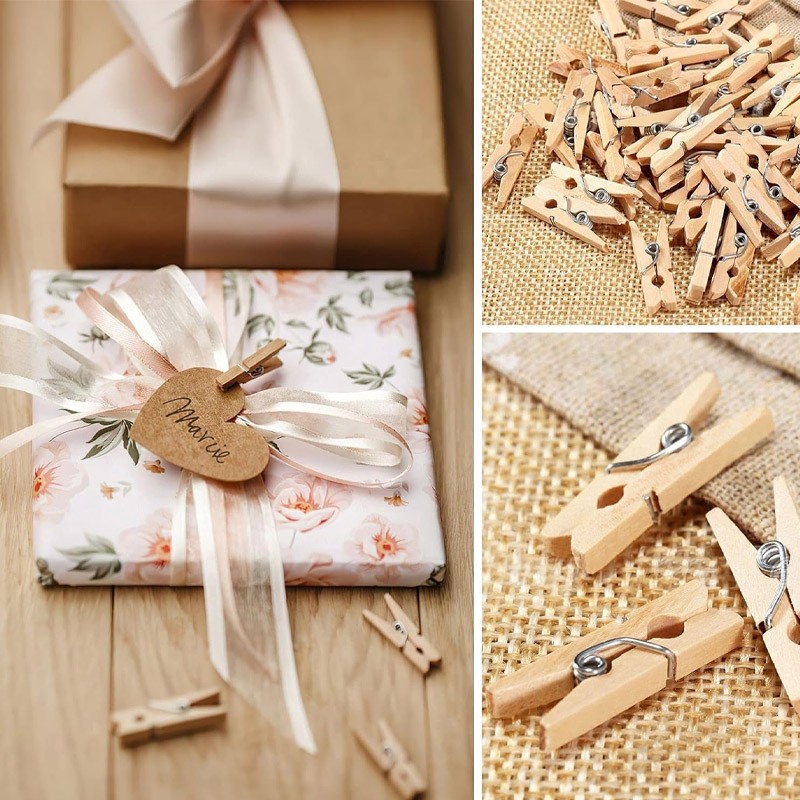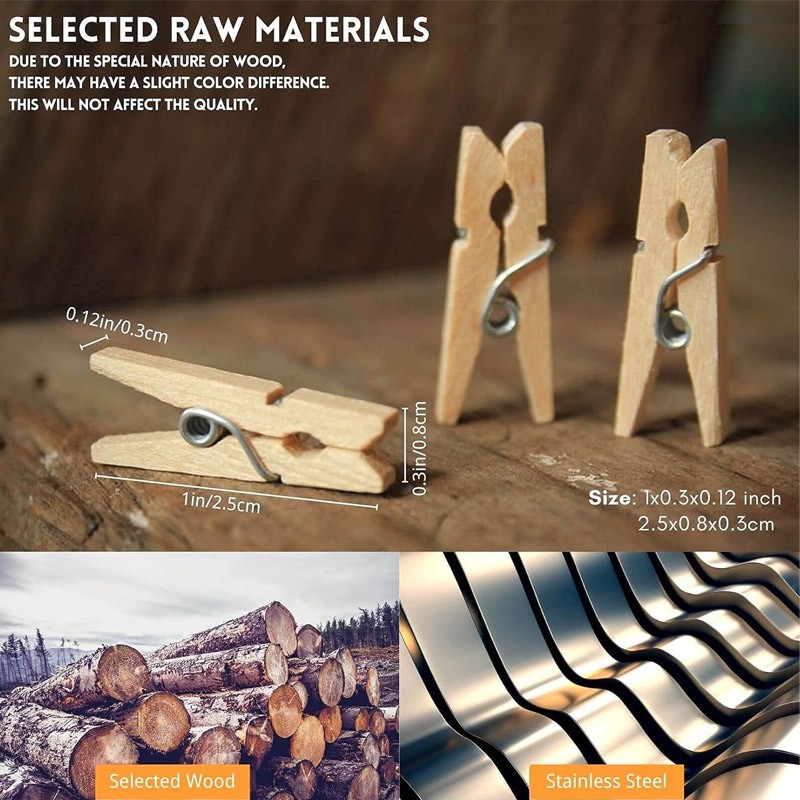 Mini Wood Clips Clothespins Natural Color 40 Clips 2.5 x 0.8 cm