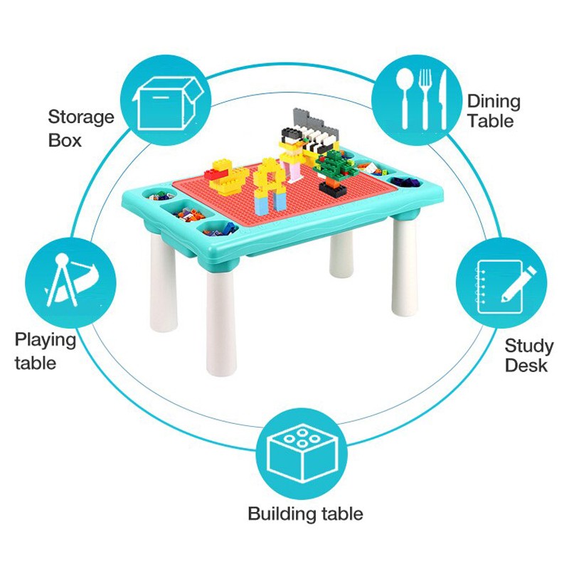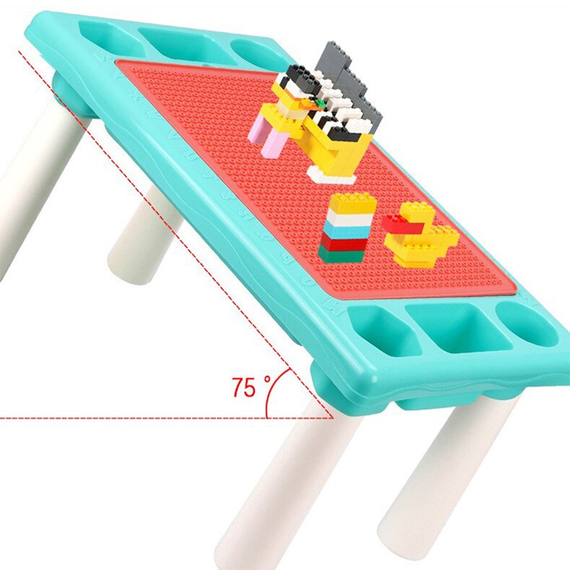 • On one side, the tabletop is intended for playing with a construction set, on which you can attach parts & build houses.