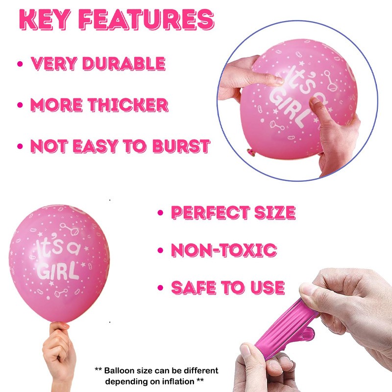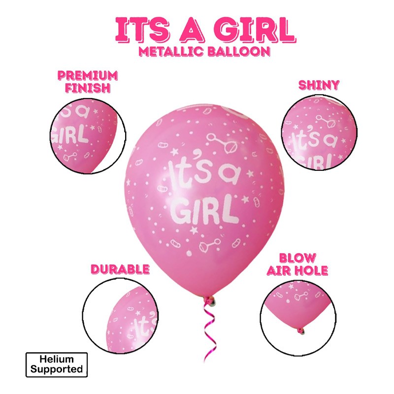 • The colorful balloons are printed with the words "Its A Girl" from 5 sides.
