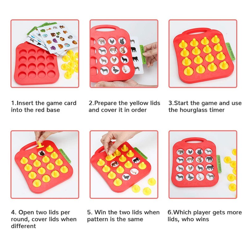 3. The player can open two lids at once, if the two lids in the same pattern, you can put the lid to their own all, if different, then cover the lid back, the next player to continue 4. Get more lids player to win