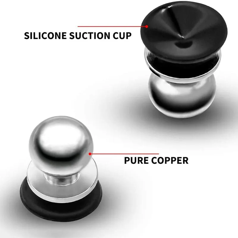 •Color:Silver. •Material:Copper, Silicone. •Size:1.1 × 1 cm. •Construction:Copper buttons, suction cup base. •Compatibility:Suitable for various types of smartphones.