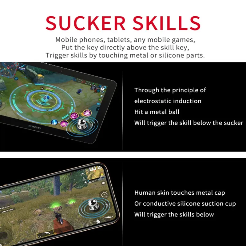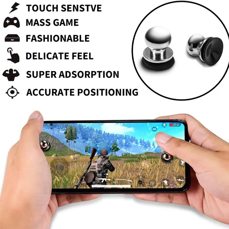 •High Sensitivity and Fast Response:The buttons help you control faster and more smoothly during gameplay, giving you better performance in games. •Suitable for Shooting and Aiming:They function as shooting and aiming buttons for mobile and tablet games, making gameplay easier and improving execution speed. •Helps Achieve Better Results:They contribute to improving your efficiency during gameplay and help you score higher points. •Made of High-Quality Materials:Made of high-quality copper and silicone to provide durability and practicality during use. •Durable and Practical:Designed to last for a long time and withstand repeated use during gaming sessions. •Compatible with Phones and Tablets:Suitable for use with both smartphones and tablets, giving you greater convenience while gaming. •Easy to Install and Remove:Can be attached and detached easily, making them convenient for everyday use. •Safe for the Screen:The silicone suction cup design does not cause any damage or scratches to the phone screen. •Provides a Smoother Gaming Experience:With these buttons, you can enjoy better control and smoother operation during gameplay. •High Flexibility During Use:Offers good flexibility in control to help you move and react faster in the game. •Designed for Mobile Shooting Games:Suitable for shooting games on iOS and Android phones and helps improve the gaming experience effectively. •Better Control in Mobile Games:Gives you the right feel and control needed to raise your level in mobile gaming. •Electrostatic Induction Technology:Made with electrostatic sensing technology to respond instantly as soon as the button is touched. •Ultra-High Gaming Sensitivity:Provides maximum sensitivity for a better and more accurate mobile gaming experience. •Compact and Practical Size:Comes in a size of 1.1 × 1 cm, making it comfortable to use and easy to carry and store without taking up much space.