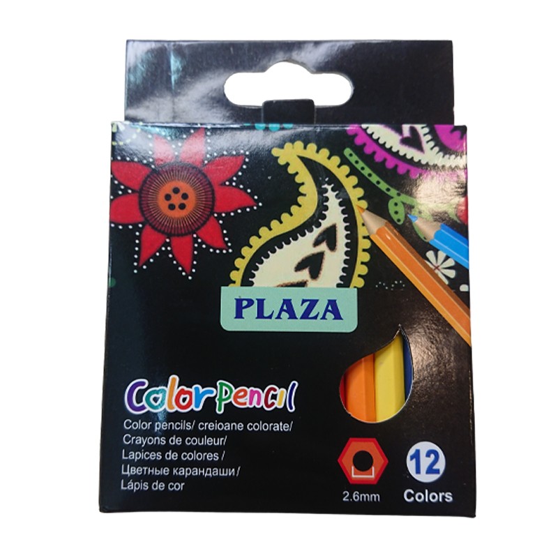 PLAZA Wood Free Hexagon 12 Coloured Pencils 9 cm