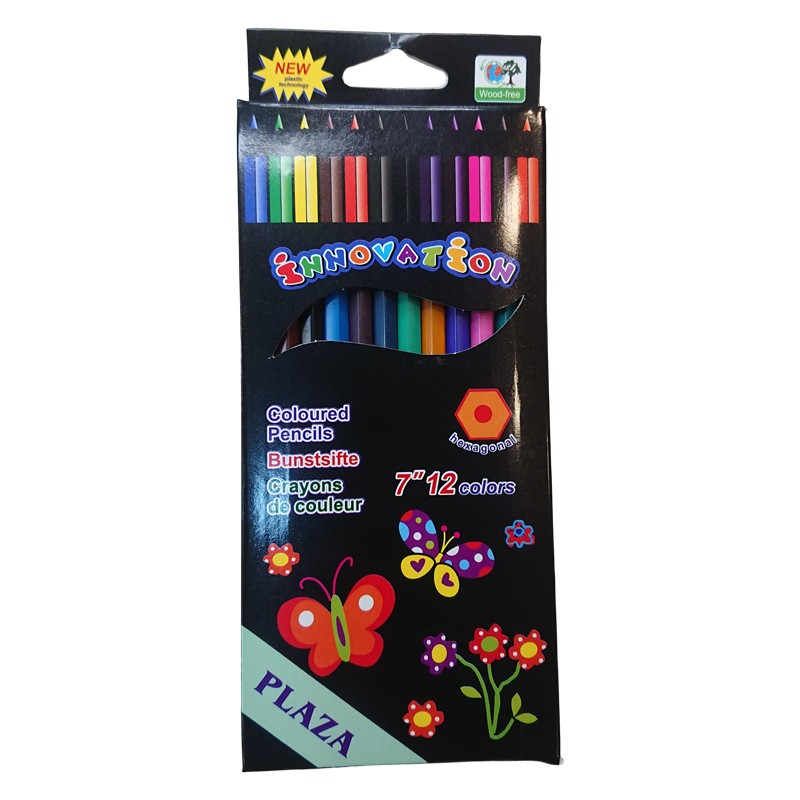 PLAZA Wood Free Hexagon 12 Coloured Pencils 17.5 cm