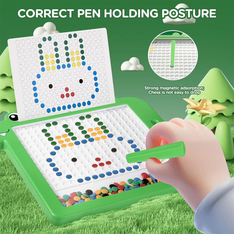 • Magnetic Beads Drawing Board contains 5 colors of beads that enable children to enhance color recognition while playing.