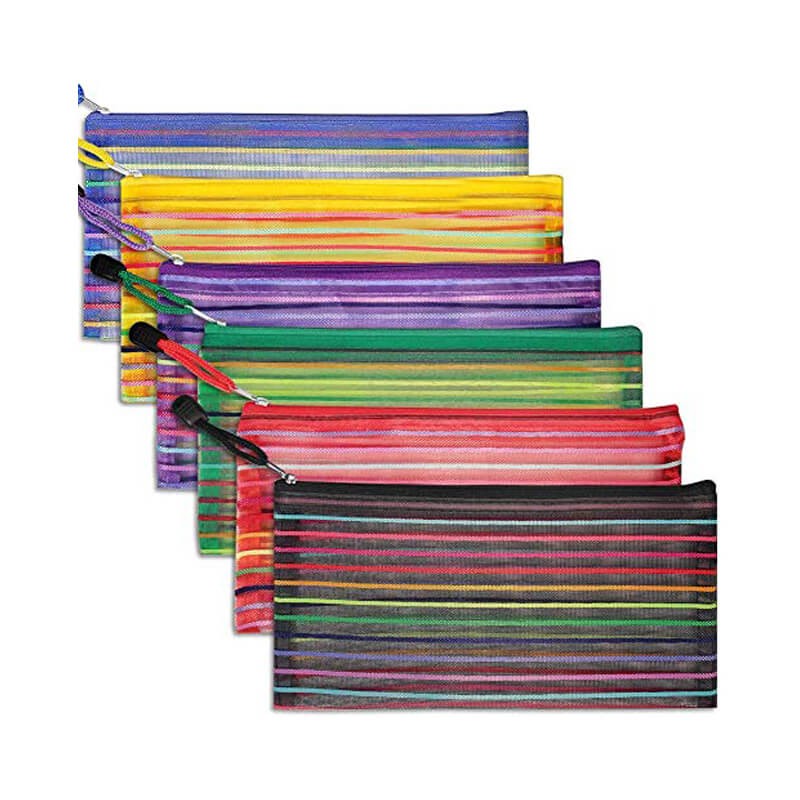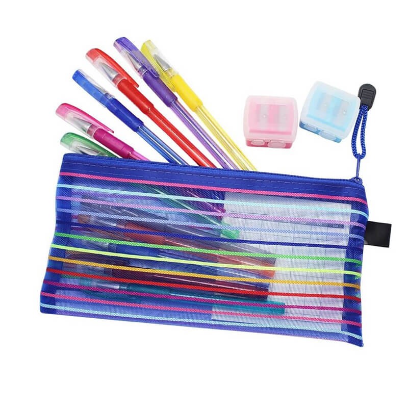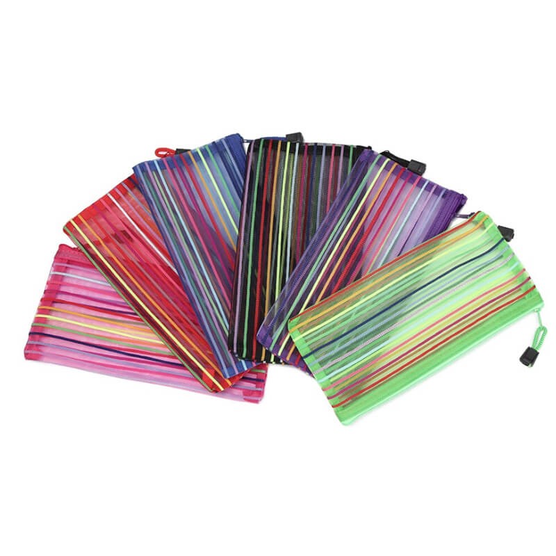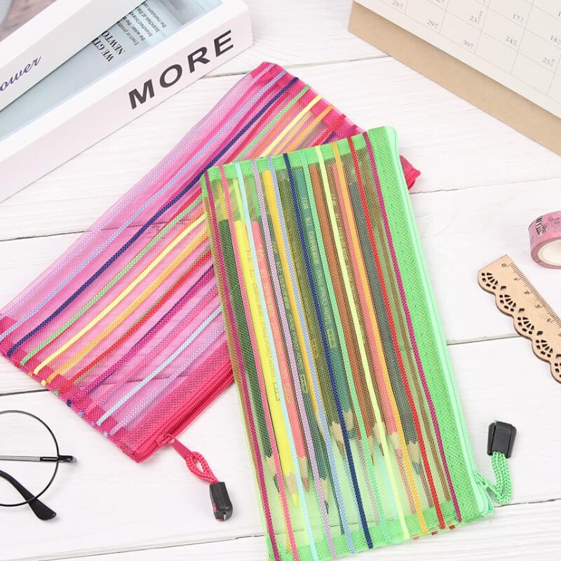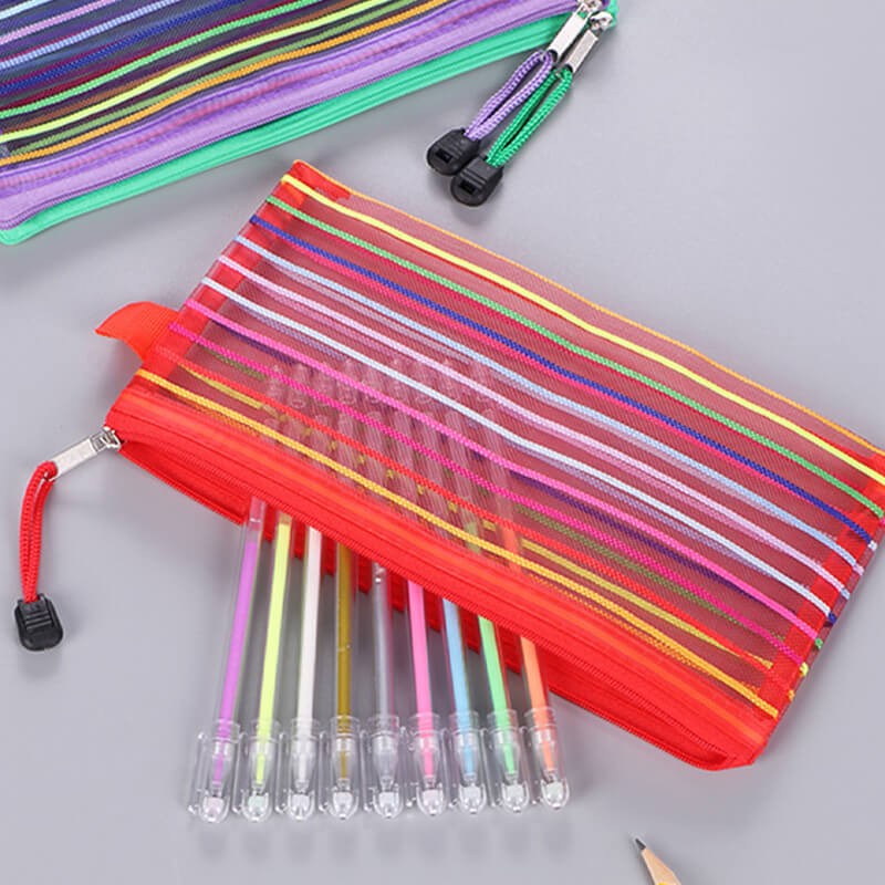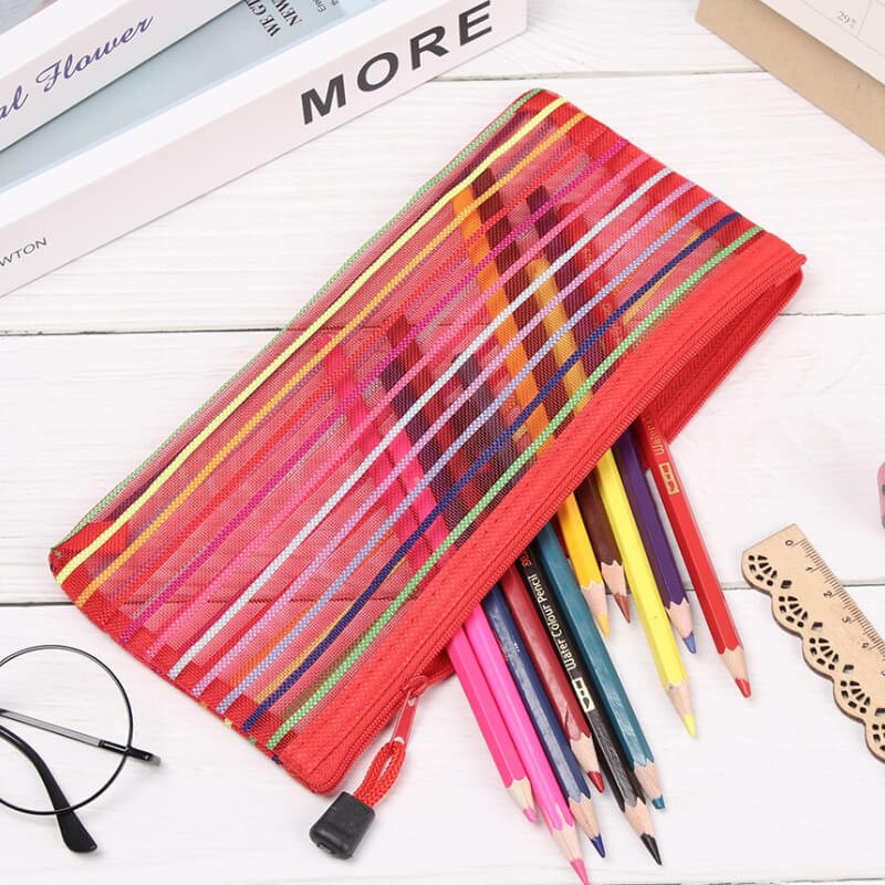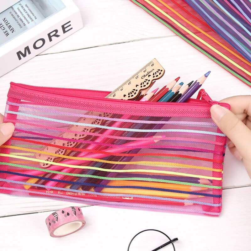 Rainbow Stripes Mesh Pencil Case Holder