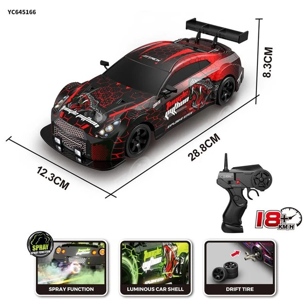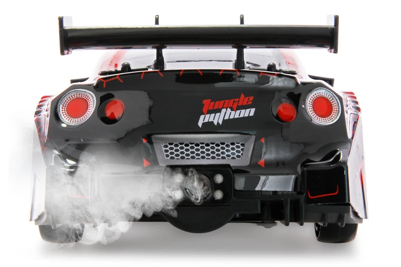 This drift car combines a realistic sporty design with powerful performance to deliver an exciting driving experience. The steam effect simulates exhaust for added realism during motion, while the 4WD system and precise throttle control ensure excellent drifting capability. With interchangeable wheels, the car easily switches between drift mode and high-speed racing.