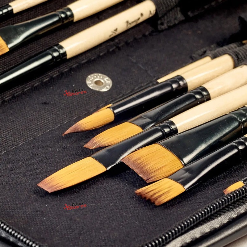 • Employing preferred nylon bristles, this paint brush kit delivers excellent elasticity and absorbency, enabling you to carry abundant pigment with ease.