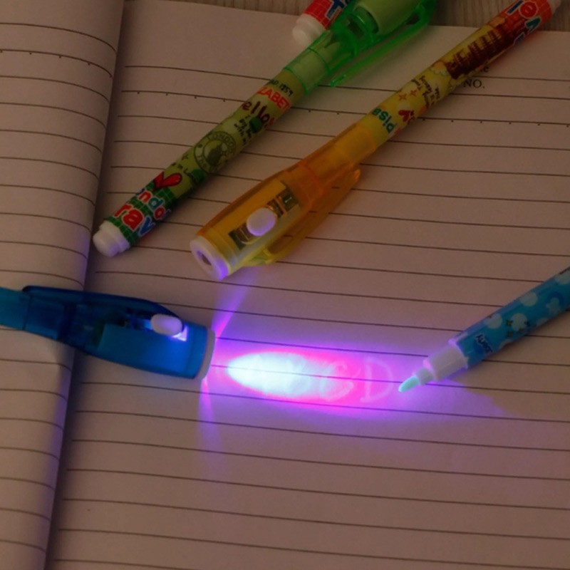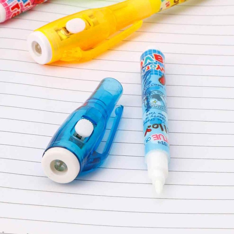 • Once your secret message has been written with this invisible ink pen, shine the built-in UV light from the pen's cover and reveal the secret message.