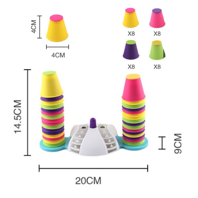 • Contents :32 Stack cups , 1 Podium Stand Spinner.