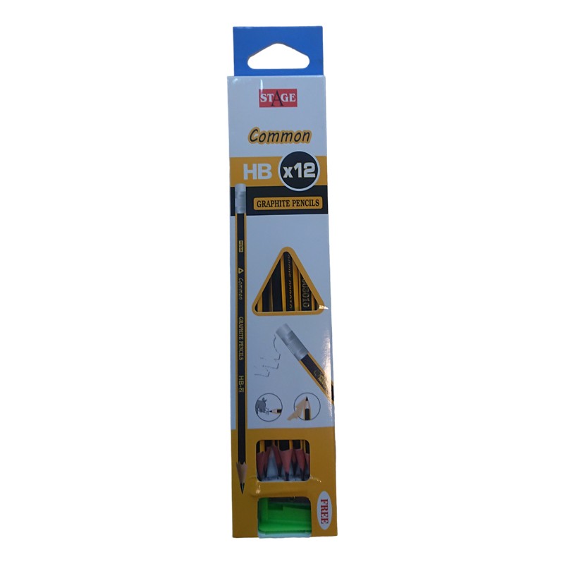 STAGE HB=2 Wood Pencil With Eraser Pack Of 12