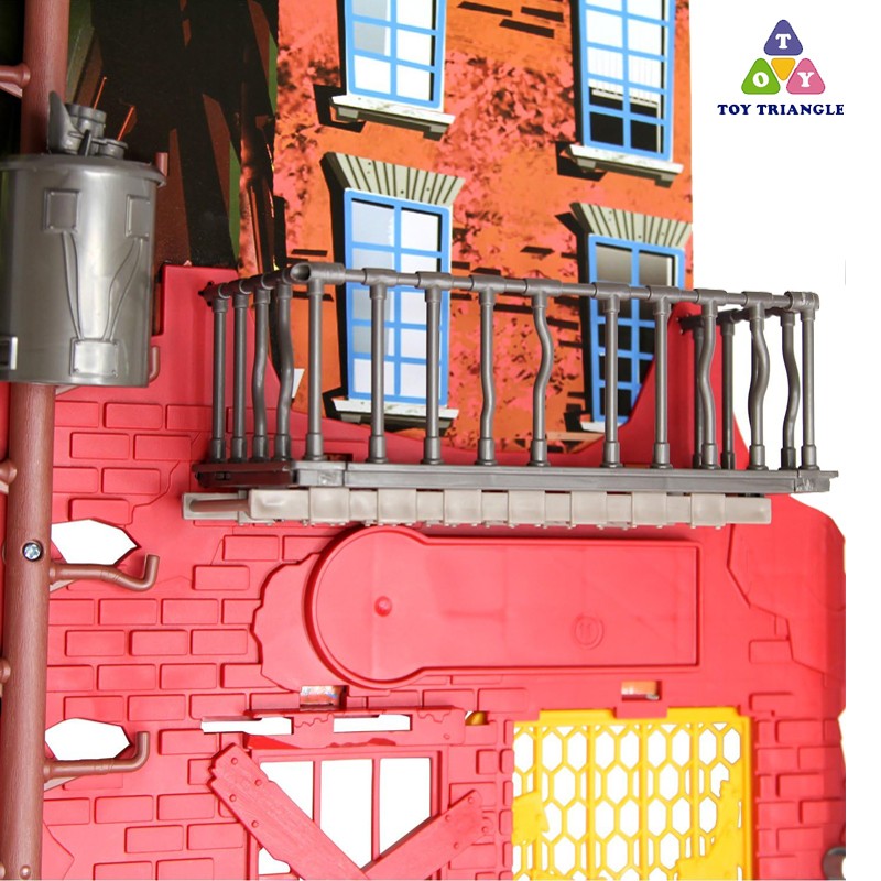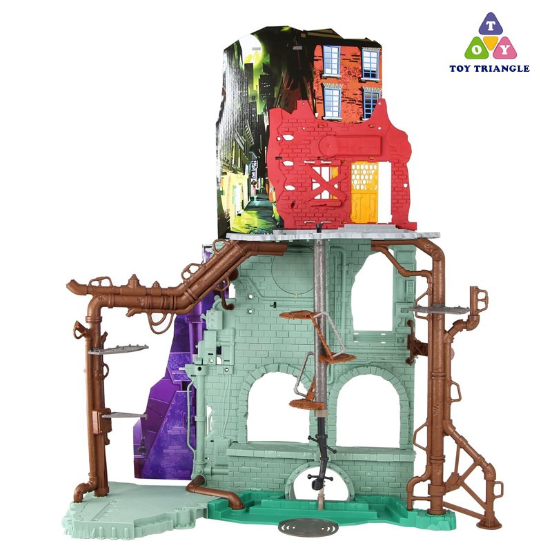 • Features include a zip line, spring loaded projectile, floors that fall out,  for the Turtles to practice their ninja skills and much, much more