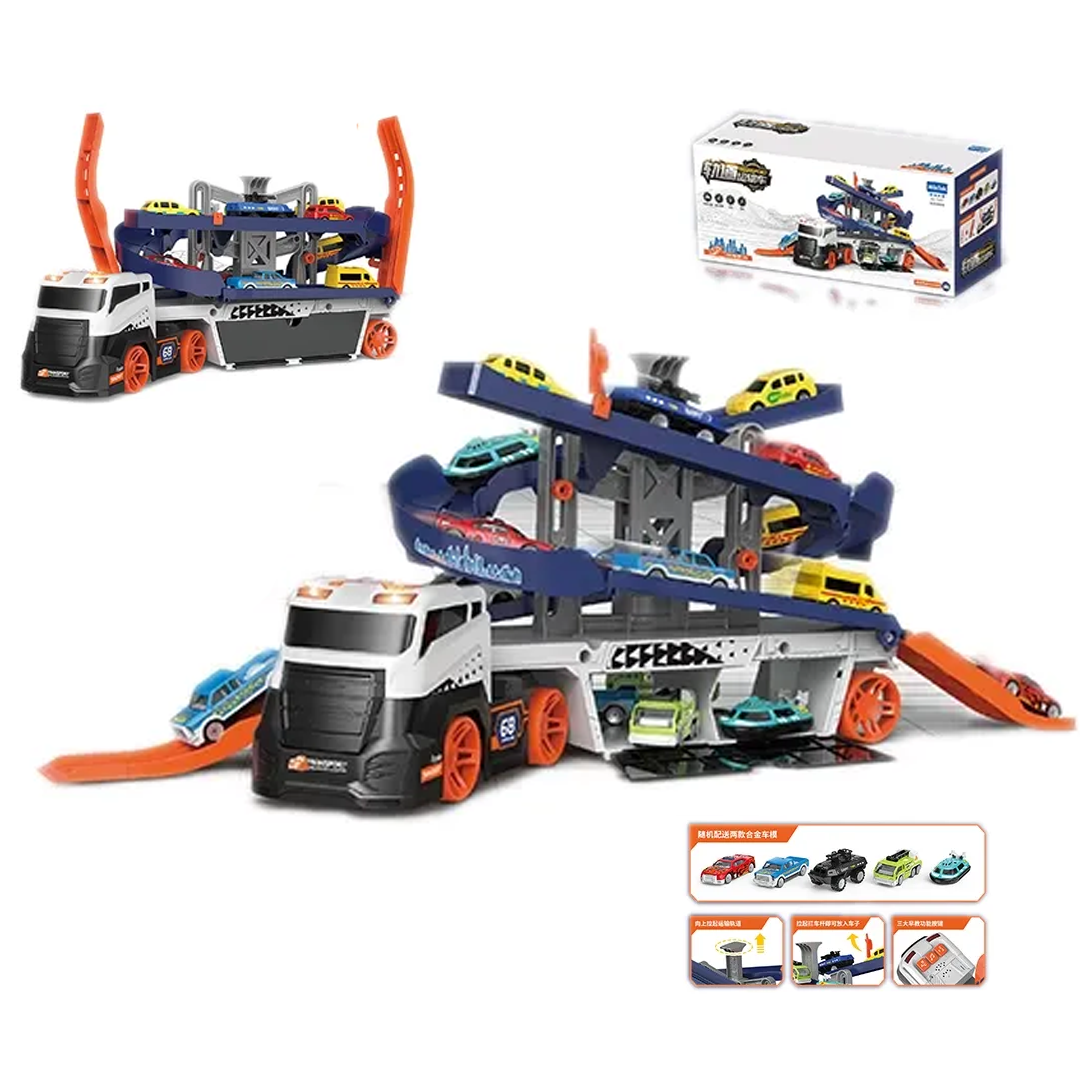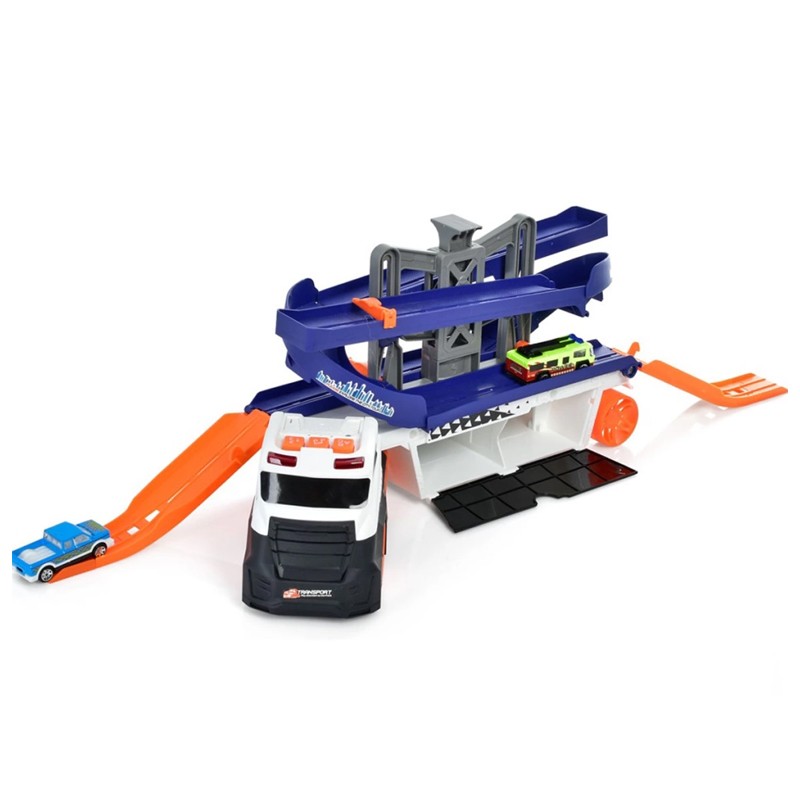 • A special lever on the body, with which you can unload the machines in the right place. Lift it up, two ramps will descend on both sides, and the cars themselves will move down the ramps in different directions