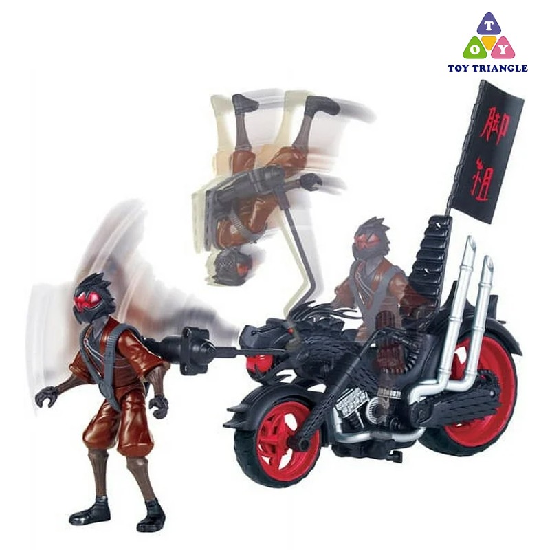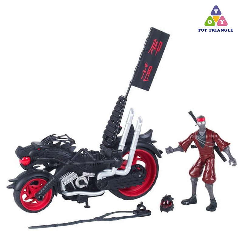• Vehicle comes with an exclusive Foot Soldier action figure, wearing his red Ninja outfit and a removable dragon helmet and weapons.
