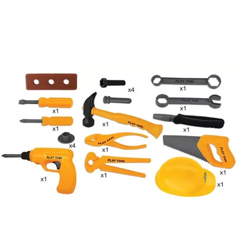 • 25 different parts (table, helmet, screws, screwdriver, nuts and other tools).