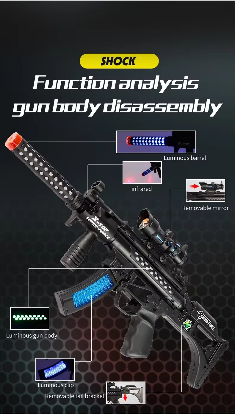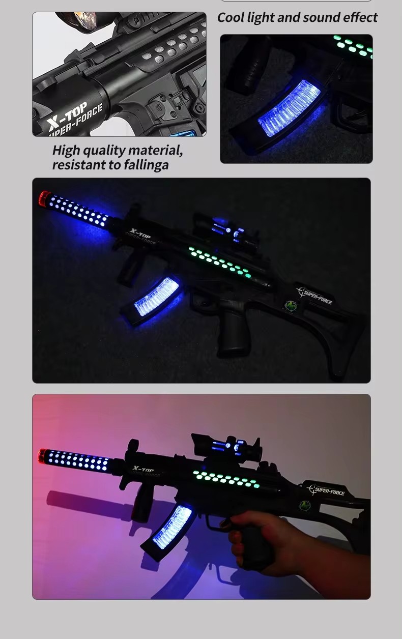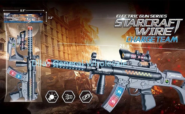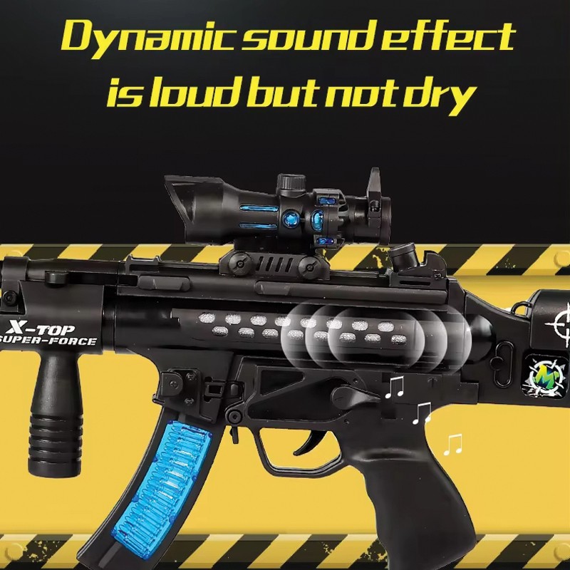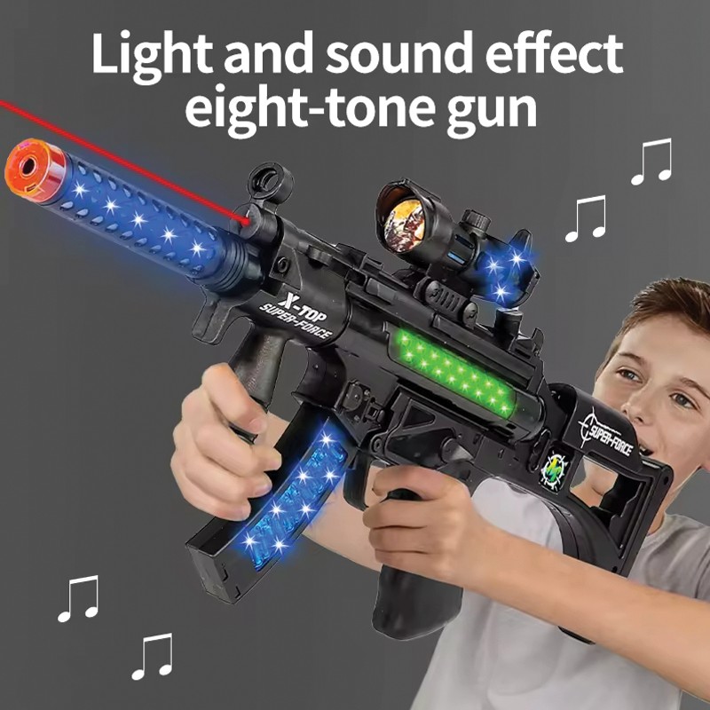 • This electronic toy machine gun contains cool led lights and cool simulated combat sound effects.
