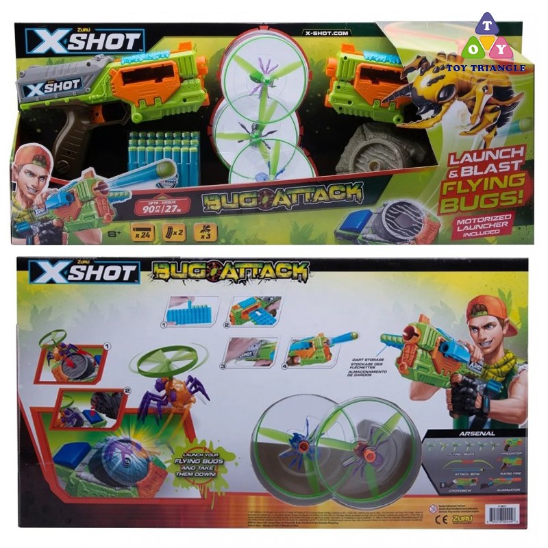 • The bug catcher must have perfect reactions. After all, the enemy can fly! Bring on the most action-packed shootout yet with the X-Shot Bug Attack set.